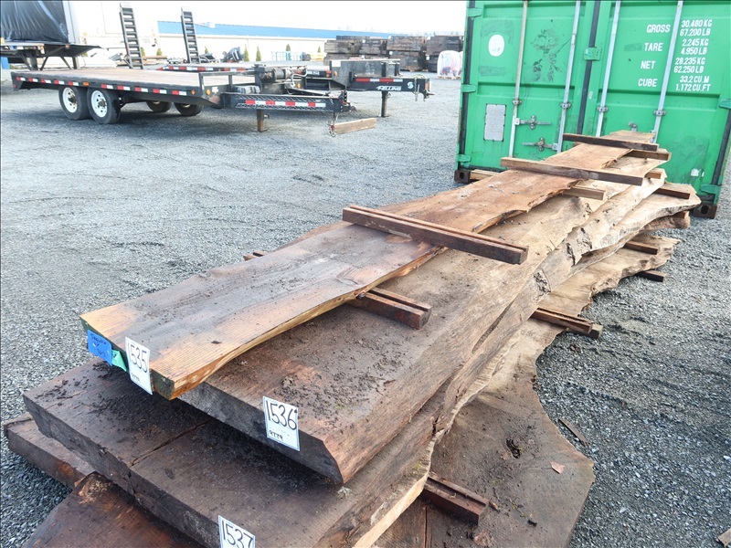 2" X 165" 3-YEAR AIR DRY LIVE EDGE SEQUOIA SLAB (LARGE END 13", SMALL END 9", MEASUREMENTS ARE APPROX)