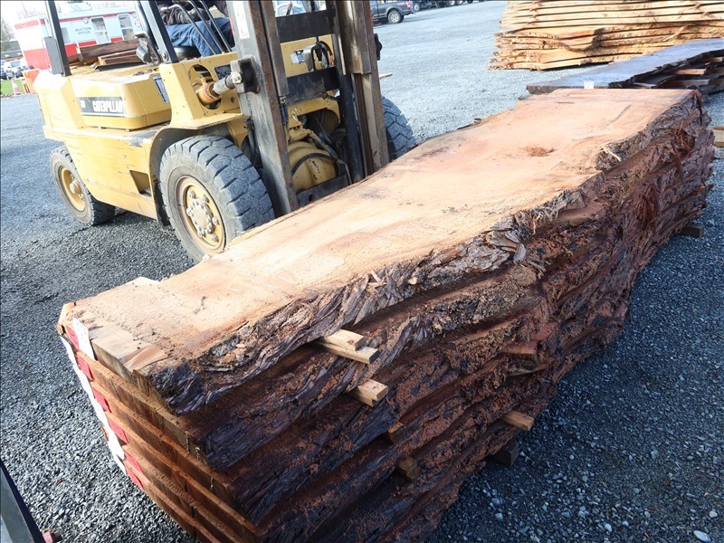 2-1/2" X 124" 2-YEAR AIR DRY LIVE EDGE REDWOOD SLAB (LARGE END 33", SMALL END 26", MEASUREMENTS ARE APPROX)