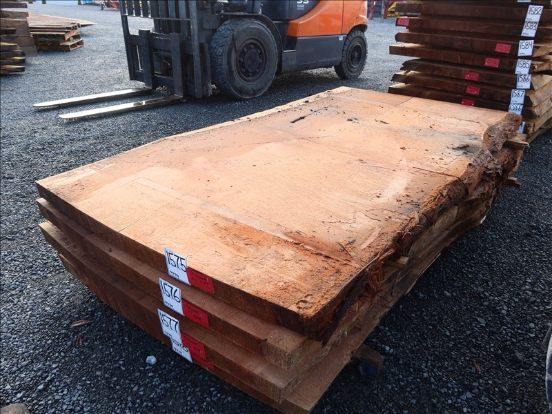 2-1/2" X 89" 2-YEAR AIR DRY LIVE EDGE REDWOOD SLAB (LARGE END 48", SMALL END 47", MEASUREMENTS ARE APPROX)