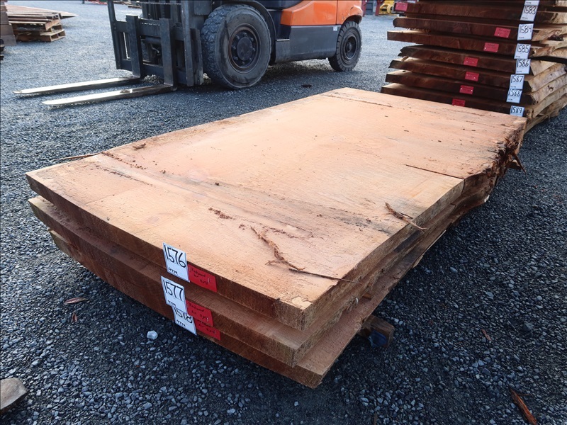 2-1/2" X 89" 2-YEAR AIR DRY LIVE EDGE REDWOOD SLAB (LARGE END 47", SMALL END 46", MEASUREMENTS ARE APPROX)