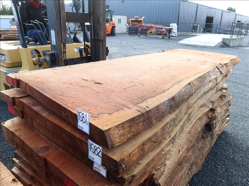 2-1/2" X 99" 2-YEAR AIR DRY LIVE EDGE REDWOOD SLAB (LARGE END 42", SMALL END 36", MEASUREMENTS ARE APPROX)