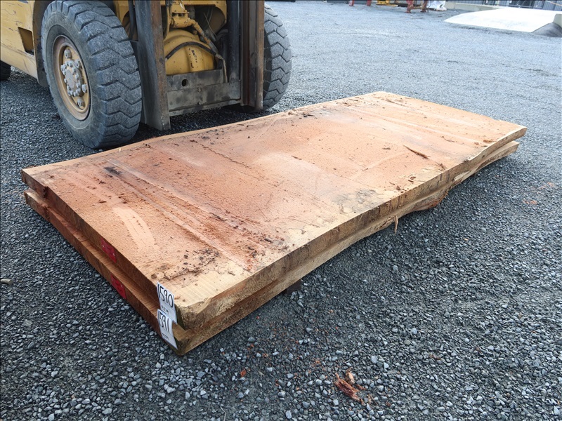 2-1/2" X 99" 2-YEAR AIR DRY LIVE EDGE REDWOOD SLAB (LARGE END 45", SMALL END 42", MEASUREMENTS ARE APPROX)