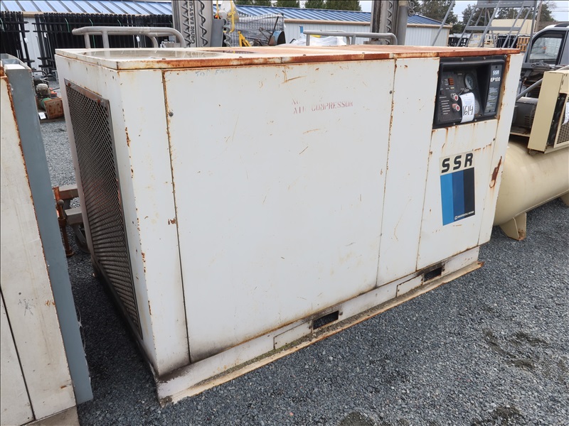 SKID MOUNTED ROTARY SCREW AIR COMPRESSOR W/FORK POCKETS, 100 HP, 480V, 3 PHASE (CONDITION UNKNOWN)