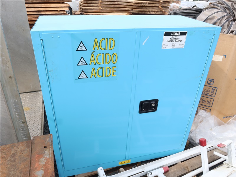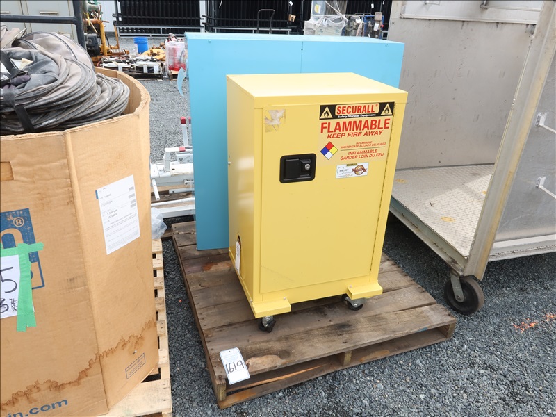 LOT, (1) ULINE H3775S CORROSIVE STORAGE CABINET & (1) SECURALL FLAMMABLE LIQUID STORAGE CABINET ON CASTERS ON THIS PALLET