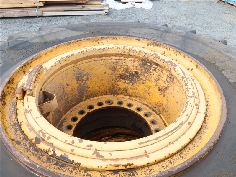 PAIR OF BRIDGESTONE R-LUG 26.5-25 20-PLY TUBELESS MOUNTED EQUIPMENT TIRES