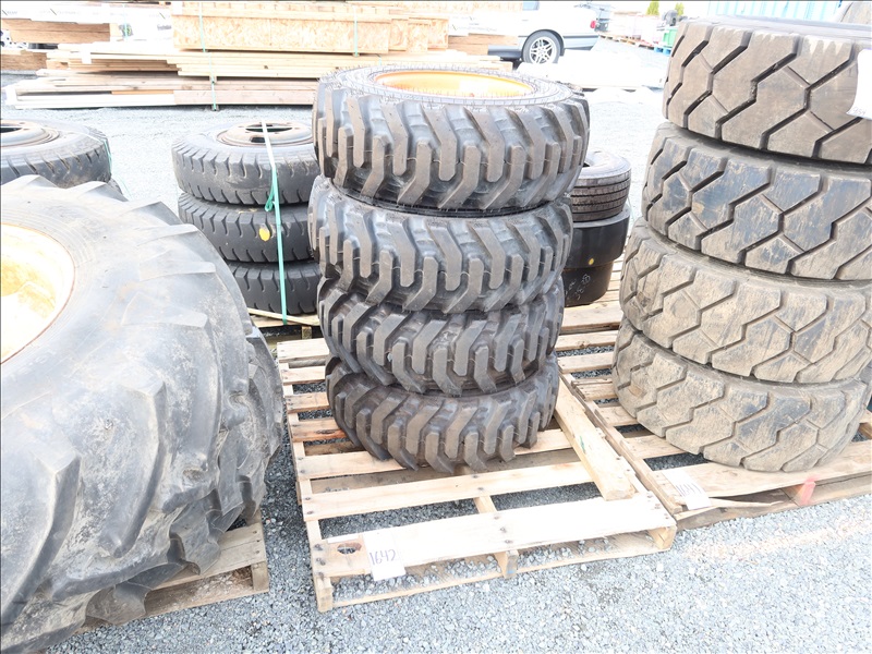 LOT, (4) BOBCAT 7390217 10-16.5 NHS 10-PLY TUBELESS MOUNTED 8-LUG TIRES (LIKE NEW)