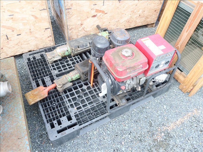 LOT, (1) HONDA EG3500X GAS GENERATOR, 120/240V & (2) SULLAIR PNEUMATIC JACK HAMMERS ON THIS PALLET