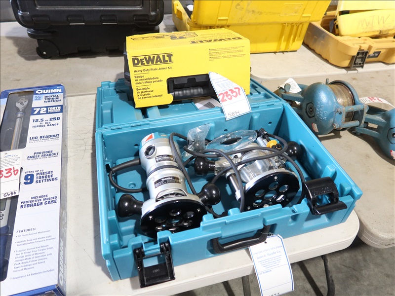 LOT, DEWALT DW682K HEAVY DUTY PLATE JOINER KIT (UNUSED) & MAKITA RF1101 2-1/4 HP ROUTER (UNUSED) W/CASES