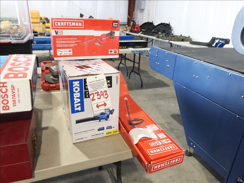 LOT, KOBALT 2600601 LEAF BLOWER KIT, CRAFTSMAN CMEHTS8022 CORDED HEDGE TRIMMER W/POWER SAW & CRAFTSMAN CMCSS800C1 2-IN-1 8" HEDGE TRIMMER & 4" GLASS SHEAR KIT