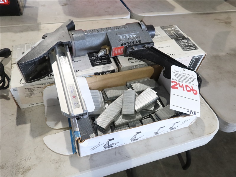 LOT, POWER NAIL 445FS PNEUMATIC POWER STAPLER WITH 2-1/2 CASES OF STAPLES