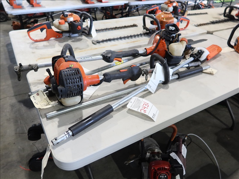 LOT, (2) ECHO POLE SAWS (1 RUNS & 1 NEEDS REPAIR) & (3) CHAINSAW HEADS, 1 EXTENSION