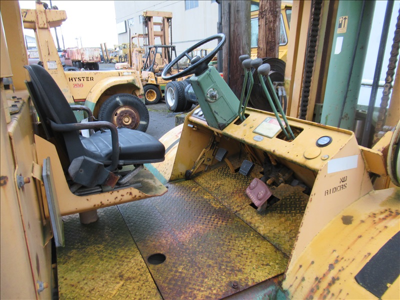 18,000 LB. CAP. DUAL PNEUMATIC TIRE FORKLIFT, PERKINS 6-CYL DIESEL ENGINE, MONOTROL, 3-STAGE MAST, SIDE SHIFT, 6' FORKS