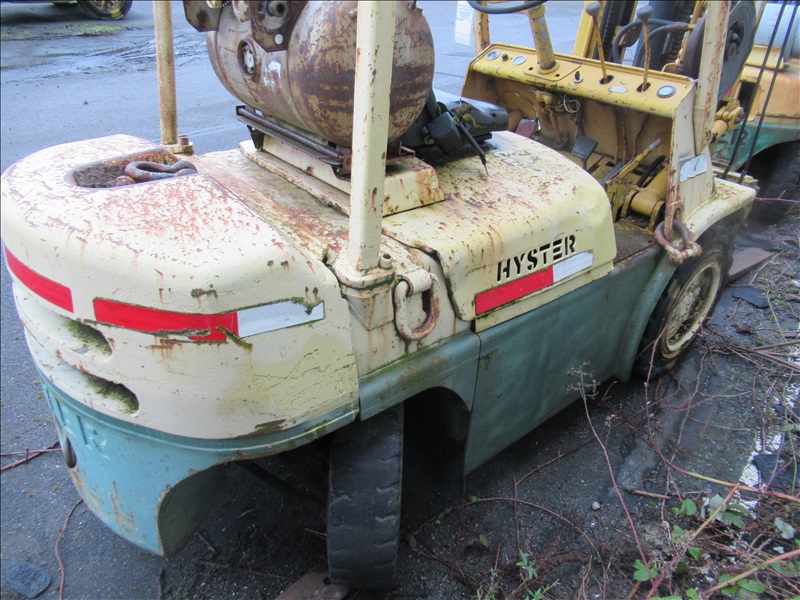 6,000 LB. CAP. CUSHION TIRE FORKLIFT, FORD 4-CYL PROPANE ENGINE, SHUTTLE TRANSMISSION, 3-STAGE MAST, SIDE SHIFT (TURNS OVER BUT DOESN'T START, BAD PROPANE)
