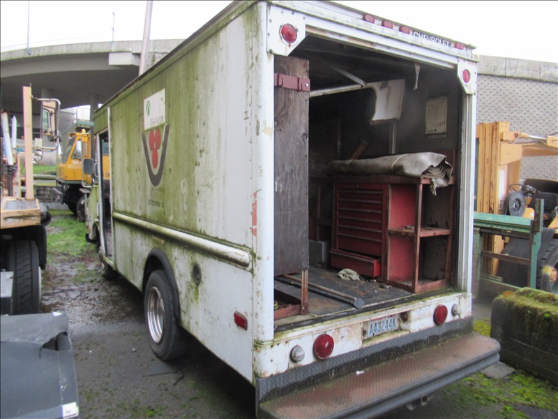 13' STEP VAN SERVICE TRUCK, V8 GAS ENGINE, AUTO TRANSMISSION, ROLL UP DOOR (RUNS BUT GAS IS BAD)