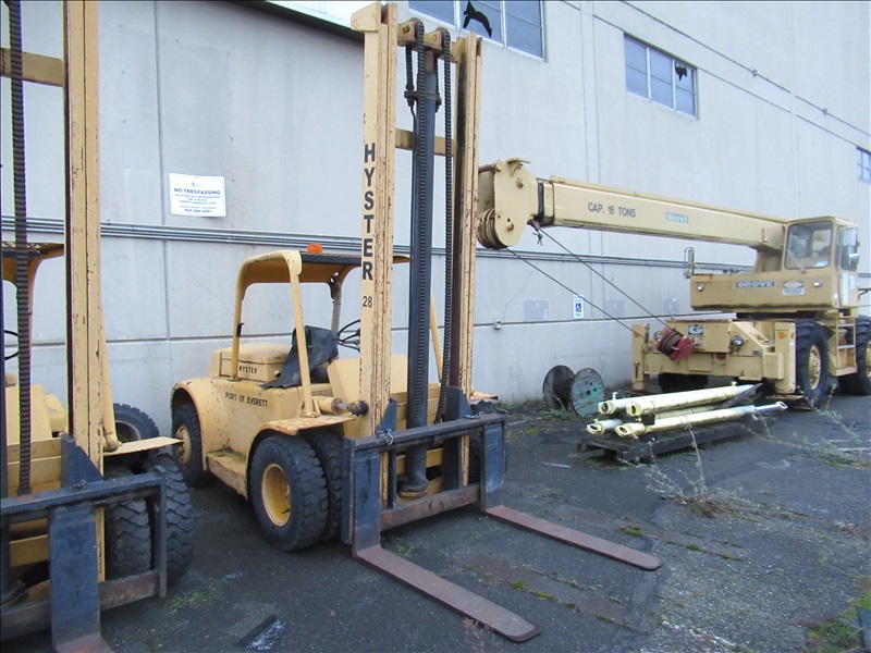 12,000 LB. CAP. PNEUMATIC DUAL FRONT TIRE FORKLIFT, CONTINENTAL F245 6-CYL GAS ENGINE, MANUAL TRANSMISSION, 140" 2-STAGE MAST