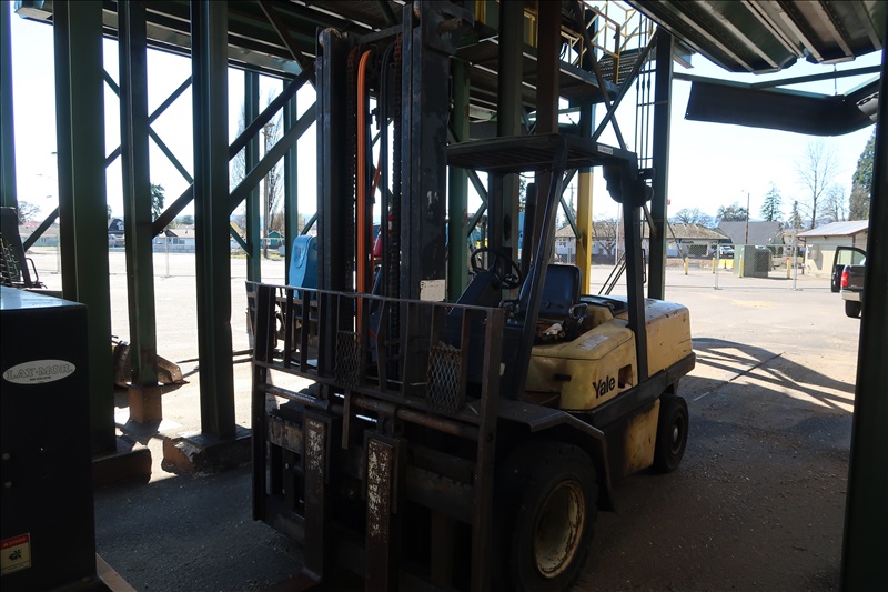11,000 LB. CAP. DIESEL FORKLIFT, 197" 2-STAGE MAST, FORK PLACERS, SIDE SHIFT, 60" FORKS, DUAL SOLID TIRES