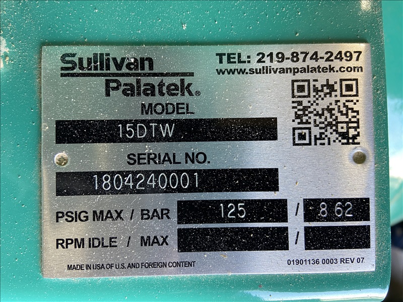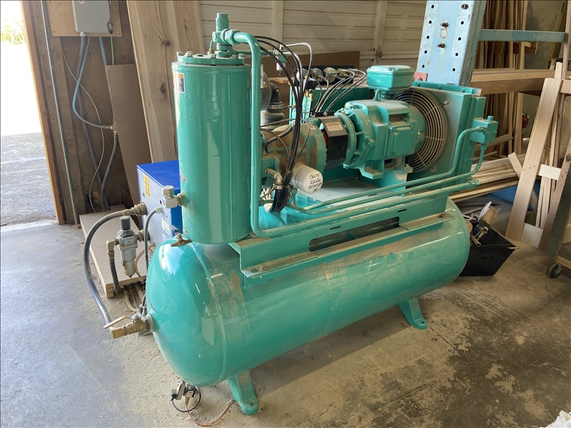 15HP AIR COMPRESSOR W/120 GAL. HORIZONTAL AIR RECEIVING TANK, HOURS READ: 14,230, 230V, 3-PH