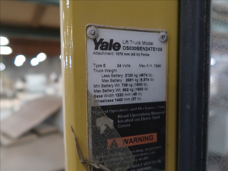 3,000 LB CAPACITY ELECTRIC WAREHOUSE FORKLIFT, 42" FORKS