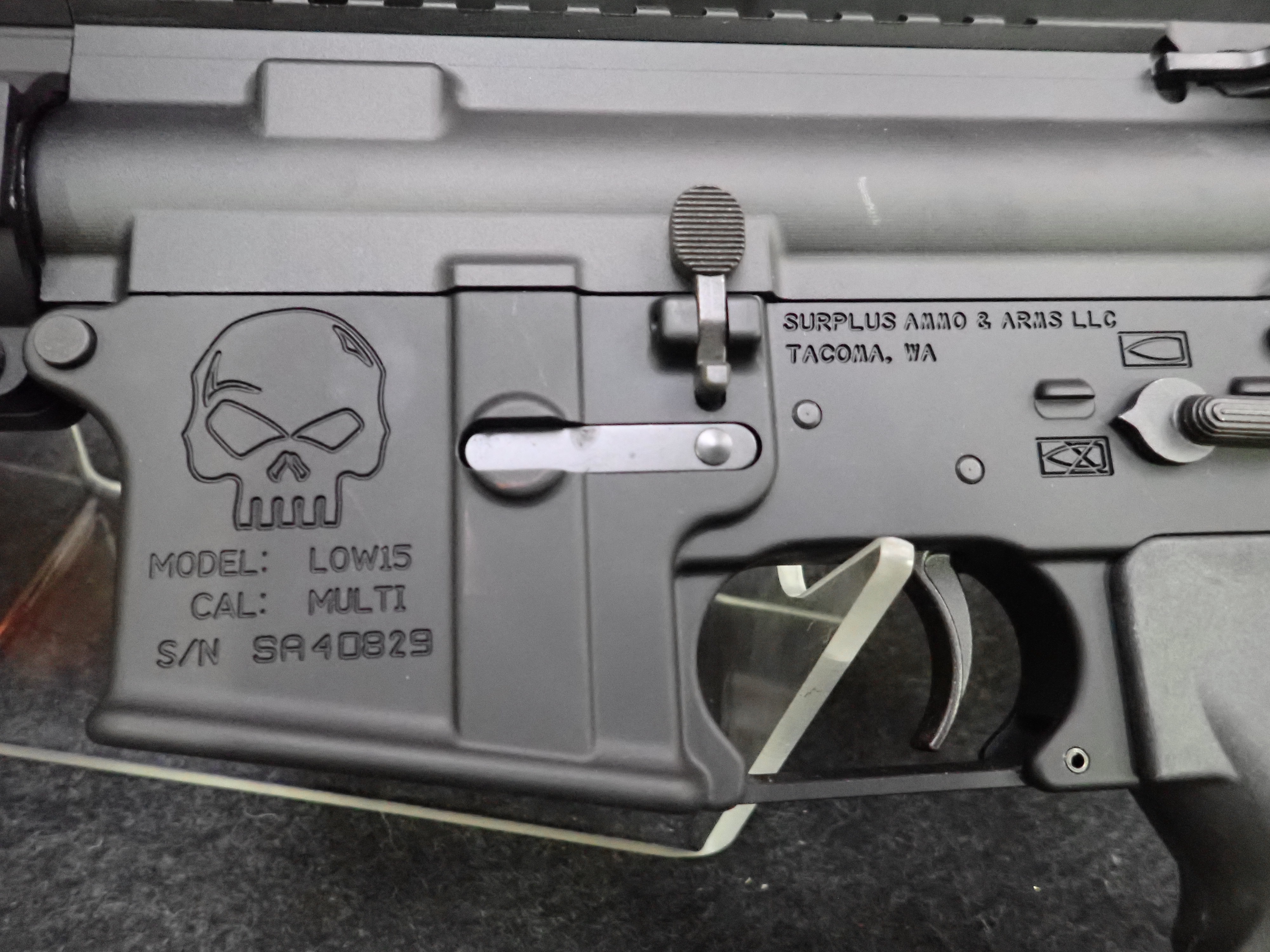 5.56 SEMI-AUTOMATIC PISTOL, 8" BARREL, SBA3 PISTOL BRACE, "SKULL" ENGRAVED W/SOFT CASE (UNUSED, THIS FIREARM ALSO REQUIRES AN 11% FEDERAL EXCISE TAX)