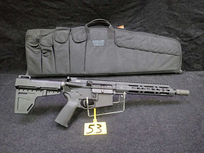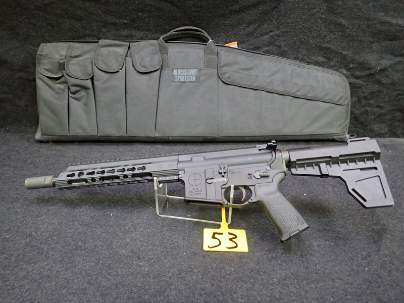 300 BLACKOUT SEMI-AUTOMATIC PISTOL, 10.5" BARREL, "RETICLE" ENGRAVED W/BLADE BRACE & SOFT CASE (UNUSED, THIS FIREARM ALSO REQUIRES AN 11% FEDERAL EXCISE TAX)