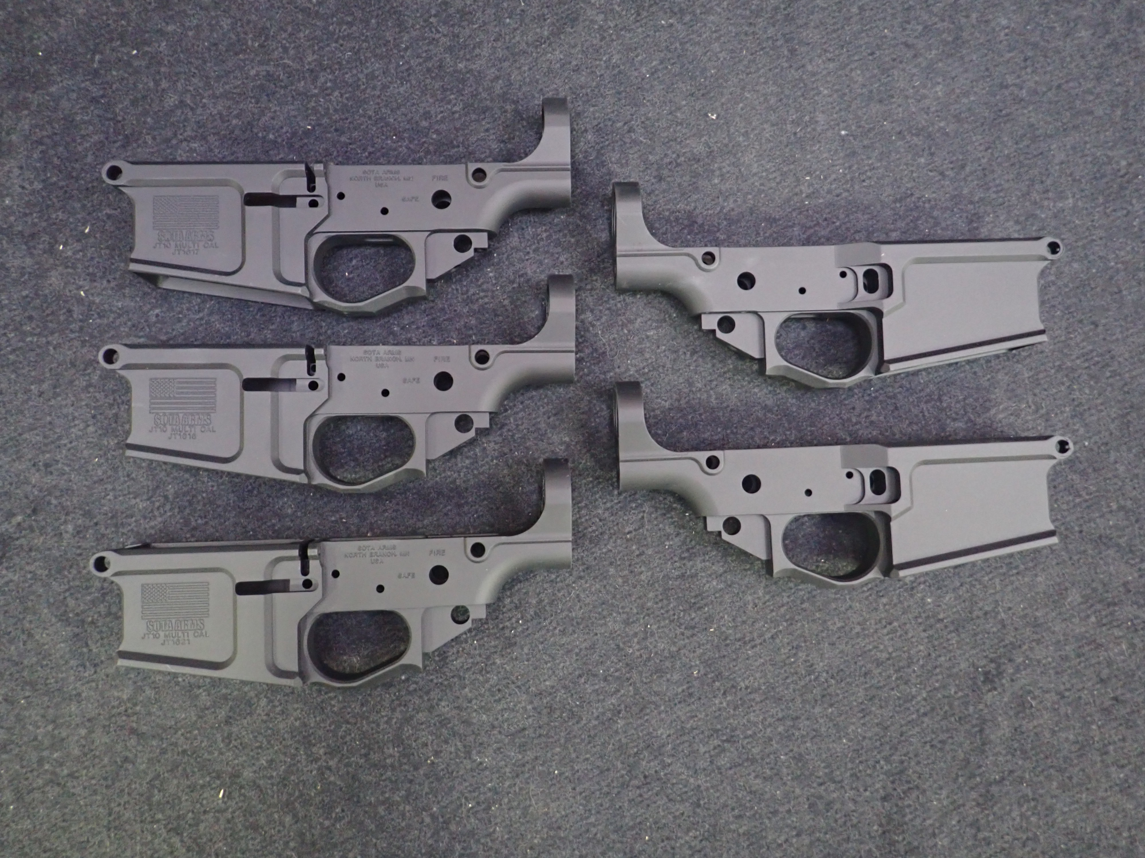 LOT, (5) SOTA ARMS JT10, .308, STRIPPED LOWER RECEIVERS (S/N'S: JT1617, JT1618, JT1619, JT1620, JT1621, UNUSED)
