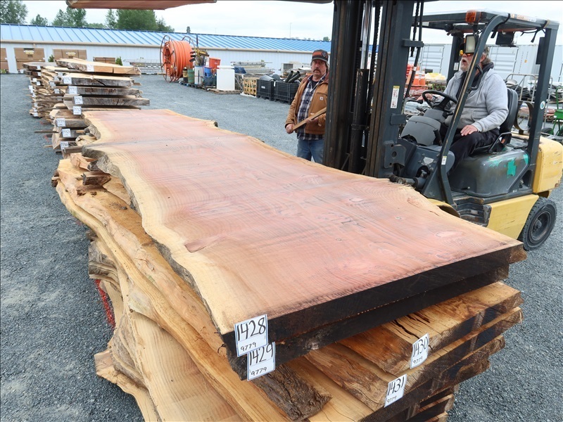 2-1/2" X 152" 5-YEAR AIR DRY LIVE EDGE REDWOOD SLAB (LARGE END 45", SMALL END 34")