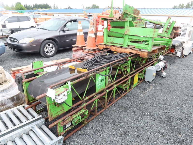 LOT, (1) 16'L X 26"W & (1) 12'L X 26"W MOTORIZED CONVEYOR BELTS W/STANDS & HOPPERS, 208-230/460V, 3 PHASE (NEEDS REPAIR)