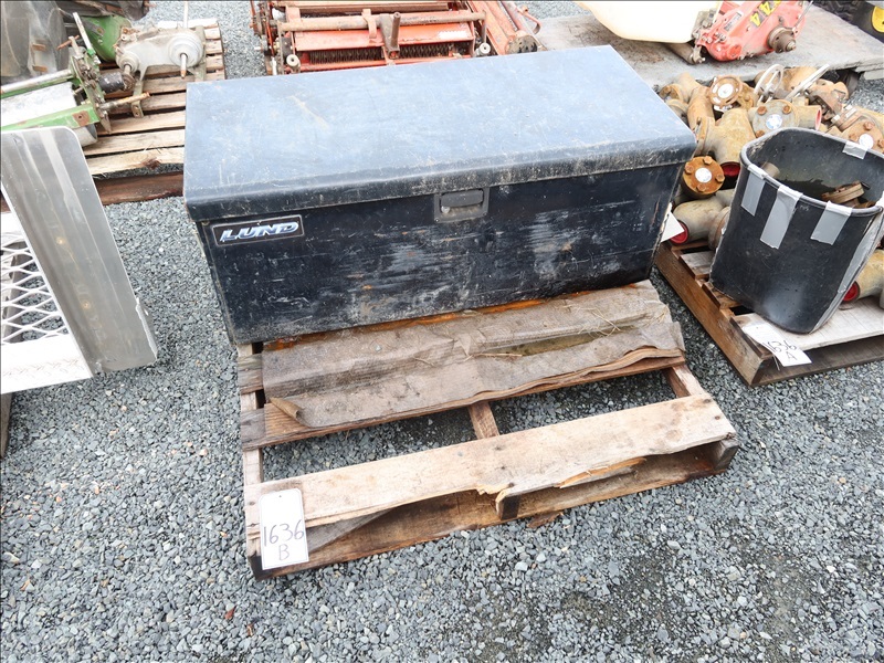 LOT, (1) LUND 19"L X 43"W X 17"H TRACK STORAGE BOX W/ASSORTED CONTRACTORS SUPPLIES