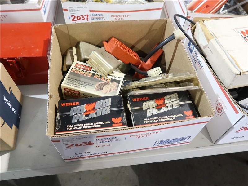 LOT, ASSORTED PERFORMANCE PARTS TO INCLUDE: EDELBROCK & WEBER POWER PLATES, EDELBROCK THERMAL SPARK & MORE