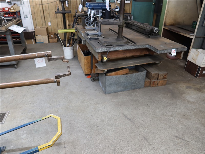 96" X 54" STEEL/WOOD SHOP TABLE ON CASTERS