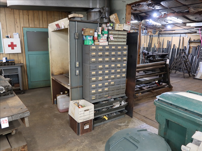 ASSORTED HARDWARE & PARTS W/THIS 54-COMPARTMENT PARTS BIN