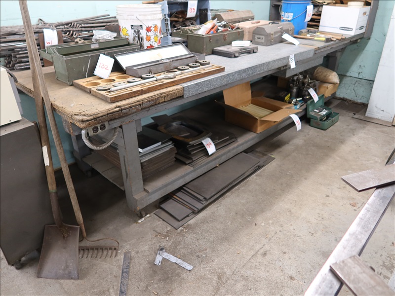 12' X 48" METAL/WOOD SHOP TABLE ON CASTERS