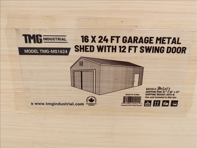 16' X 24' GARAGE METAL SHED W/ 12' SWING DOOR