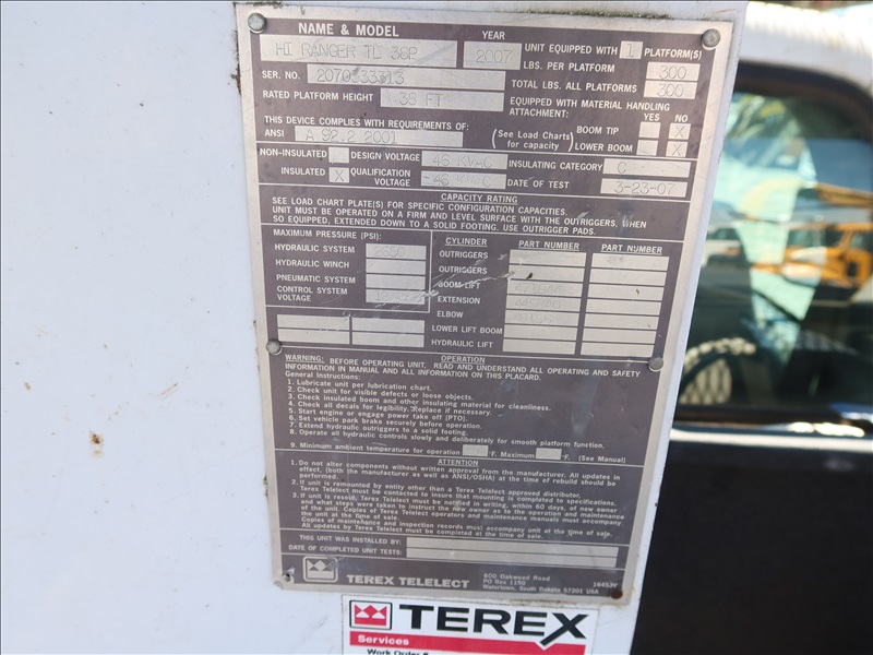 BUCKET TRUCK, HI RANGER TL38P, 38', 300 LB, OUTRIGGERS, POWER STROKE, AUTO, 4WD