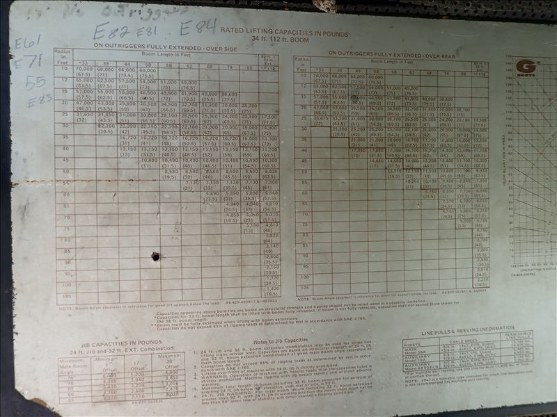 35 TON HYDRAULIC TRUCK CRANE, CUMMINS BIG CAM 350, FULLER 13 SPEED TRANSMISSION , 33’ * 80' 3 SECTION BOOM, 32' SWING AWAY JIB, 3-SHEAVE BLOCK, 6-TON HOOK BALL, AUXILARY WINCH, LSI GS550 WIRELESS BOOM ANGLE, BOOM LENGTH & LMI SYSTEM, ANTI TWO-BLOCK, 4/AXLE CARRIER, FRONT TIRE 385/65 22.5, REAR TIRES 11R 24.5,