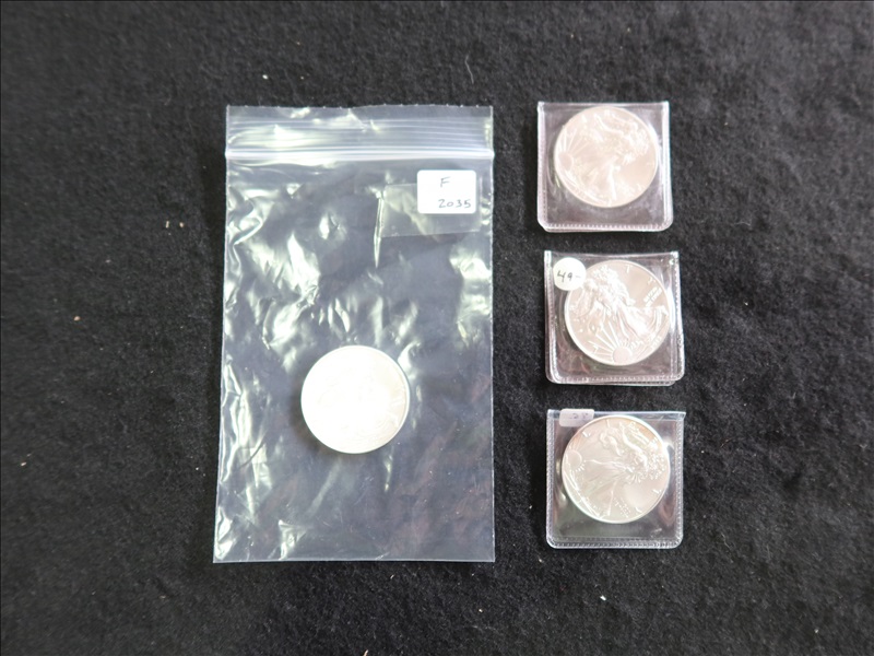 LOT, (4) ASSORTED SILVER EAGLES TO INCLUDE: (1) 2012, (1) 2013, (1) 2014 & (1) 2015 (4 OZ 99.9 SILVER)