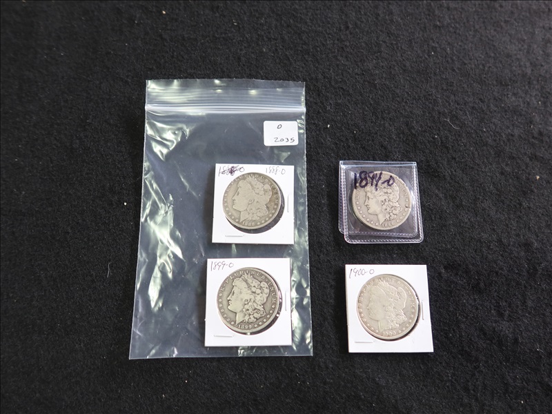 LOT, (4) ASSORTED MORGAN SILVER DOLLARS TO INCLUDE: (1) 18800, (1) 1894O, (1) 1899O & (1) 1900O