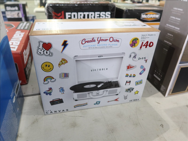 THE CANVAS SUITCASE RECORD PLAYER W/STICKERS