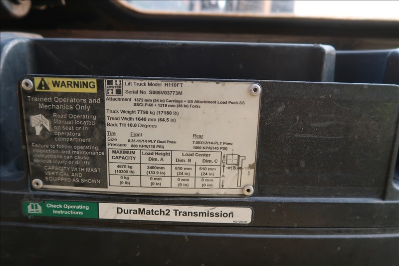 10,300 LB. CAP. DUAL PNEUMATIC TIRE FORKLIFT, KUBOTA 3.8 LITER TURBO DIESEL ENGINE, 133" 2-STAGE MAST, SIDE SHIFT, SSCH-60 LUMBER PUSH ATTACHMENT, LUMBER FORKS, MONOTROL