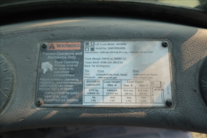 18,450 LB. CAP. DUAL PNEUMATIC TIRE FORKLIFT, CUMMINS QSB 4-1/2 LITER TIER 4 FINAL TURBO DIESEL ENGINE, 212" 2-STAGE MAST, SIDE SHIFT, FORK POSITIONERS, LUMBER FORKS, FINGERTIP CONTROLS, MONOTROL