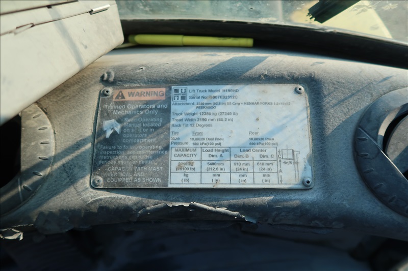 18,100 LB. CAP. DUAL PNEUMATIC TIRE FORKLIFT, CUMMINS QSB 4-1/2 LITER TIER 4 FINAL TURBO DIESEL ENGINE, 212" 2-STAGE MAST, SIDE SHIFT, FORK POSITIONERS, LUMBER FORKS, FINGERTIP CONTROLS