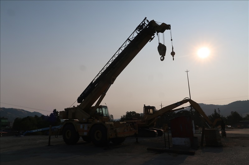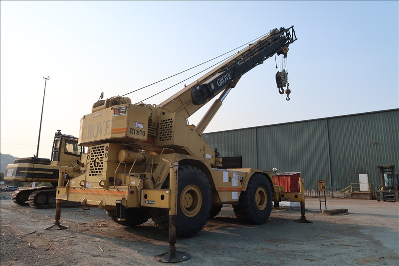 70-TON CAP 4X4 ROUGH TERRAIN CRANE, CAT 6-CYL TURBO DIESEL ENGINE, 40'-125' 4-SECTION BOOM, 35'-60' SWING AWAY OFF-SETTABLE JIB, ANTI-TWO-BLOCK, PAT DS350 LOAD INDICATOR