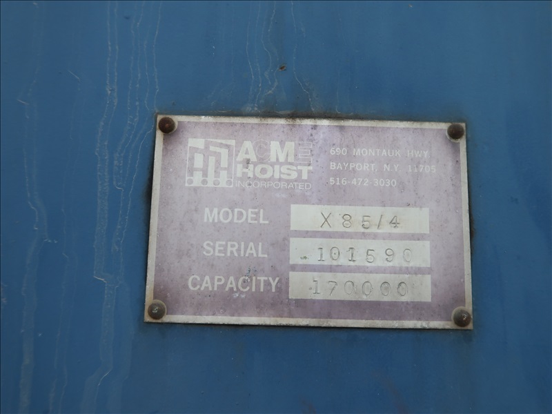 85-TON TRAVEL LIFT, FORD V8 GAS, 2-PIECE LIFTING STRAPS