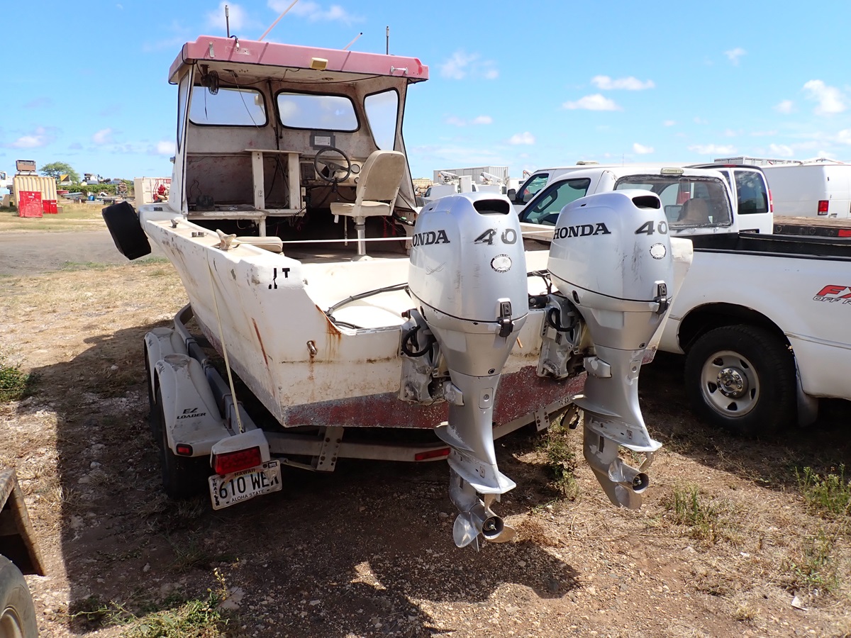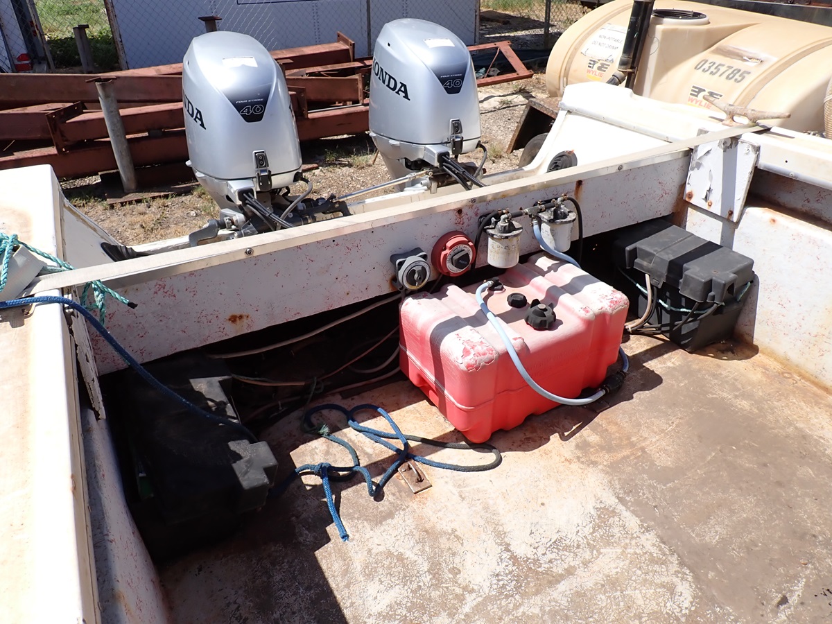 19' FIBEGLASS SURVEY BOAT, (2) HONDA 40HP OUTBOARDS, EZ LOADER T/A TRAILER