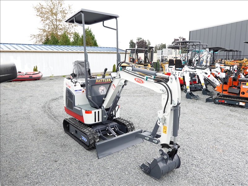 MINI EXCAVATOR, 13.5 HP BRIGGS & STRATTON 1 CYL GAS, 15" BUCKET, THUMB, AUX HYD, BLADE, RUBBER TRACKS, CANOPY