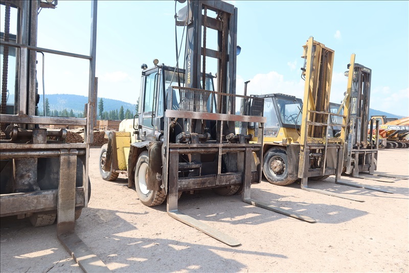 DUAL PNEUMATIC FORKLIFT, 214" MAST, SIDE SHIFT, 6 CYL PERKINS, MONOTROL (UNIT #82)
