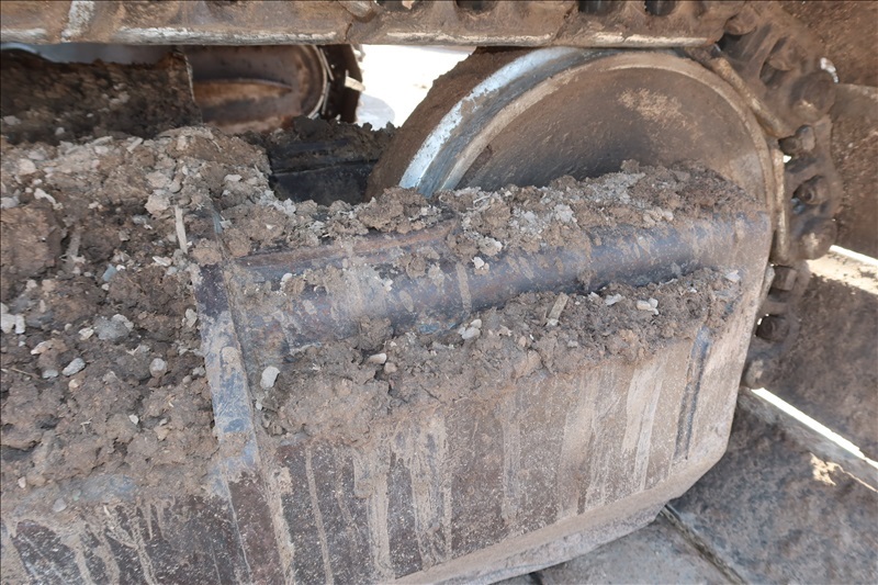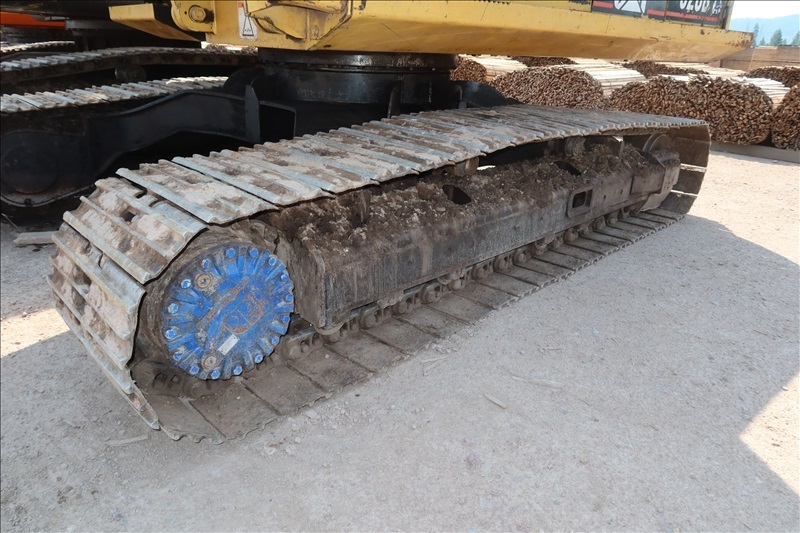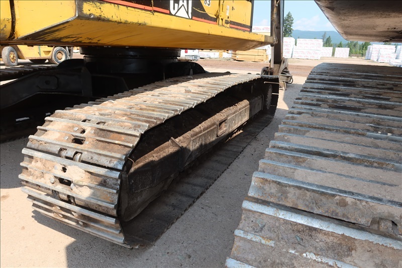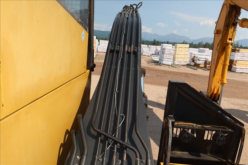 HEEL BOOM LOG LOADER, HYDRAULIC SWIVEL GRAPPLE, CAT DIESEL, 27-1/2" TRIPLE GROUSER, CAB & CYLINDER GUARD (UNIT #83)