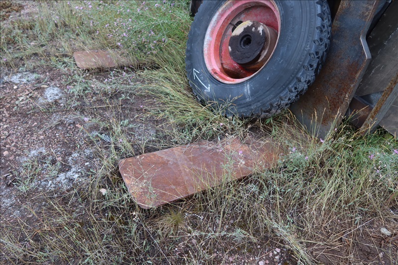 PNEUMATIC FORKLIFT, 2-STAGE MAST, LUMBER FORK (UNIT #58, PARTS MACHINE, NON-RUNNING)