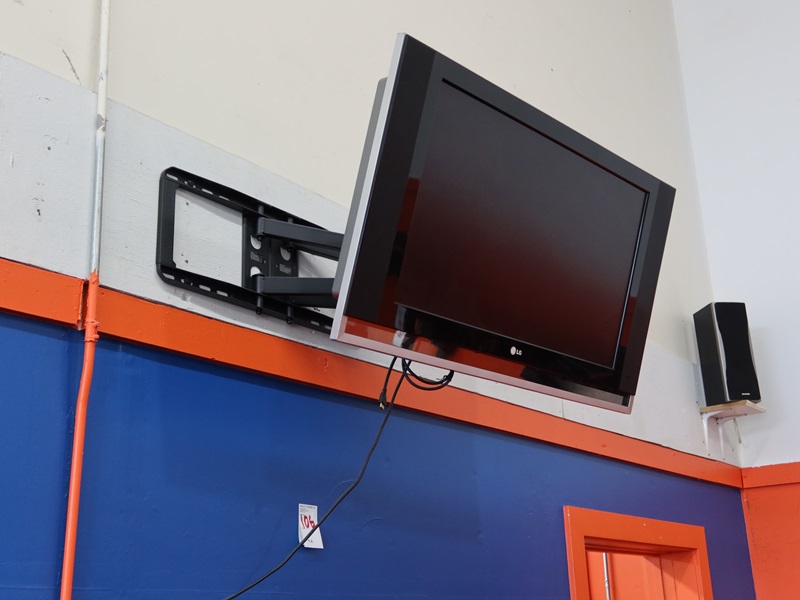 28" WALL-MOUNTEFLATSCREEN TV W/WALL-MOUNTED (BUYER IS RESPONSIBLE FOR 4' LADDER, TOOLS & REMOVAL)
