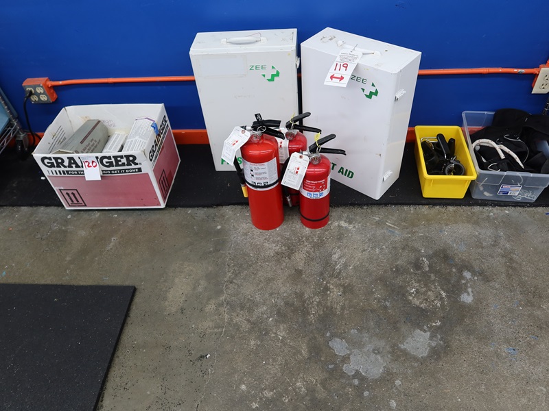 (3) FIRE EXTINGUISHERS & (2) FIRST AID KIT BOXES (BOXES ONLY)